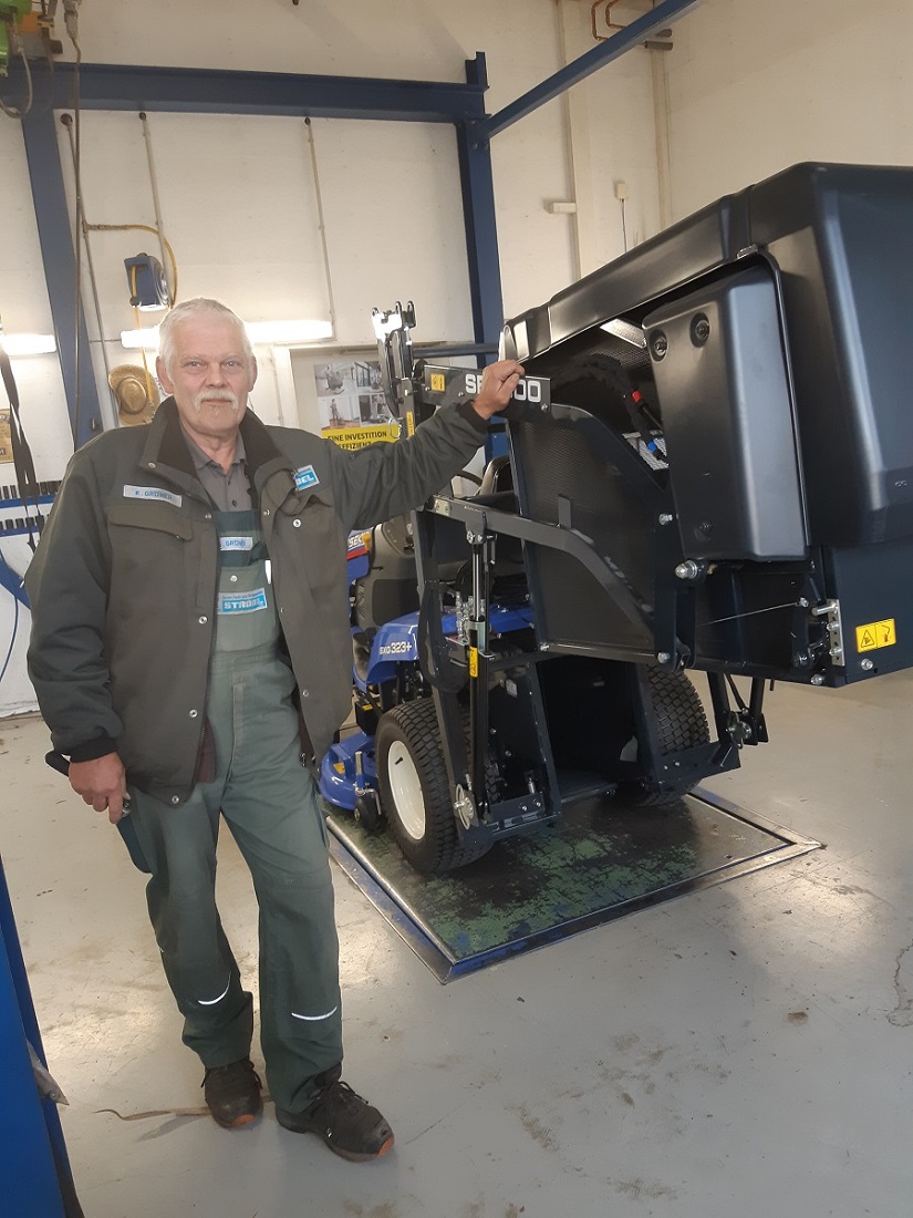 Günter ist Landmaschinenmechanikermeister. Heute arbeitet er überwiegend im Rasenroboterbereich, im Verkauf und in der Kundenberatung. Aber es reizt ihn auch immer wieder, in der Werkstatt tätig zu werden - das liegt ihm im Blut.