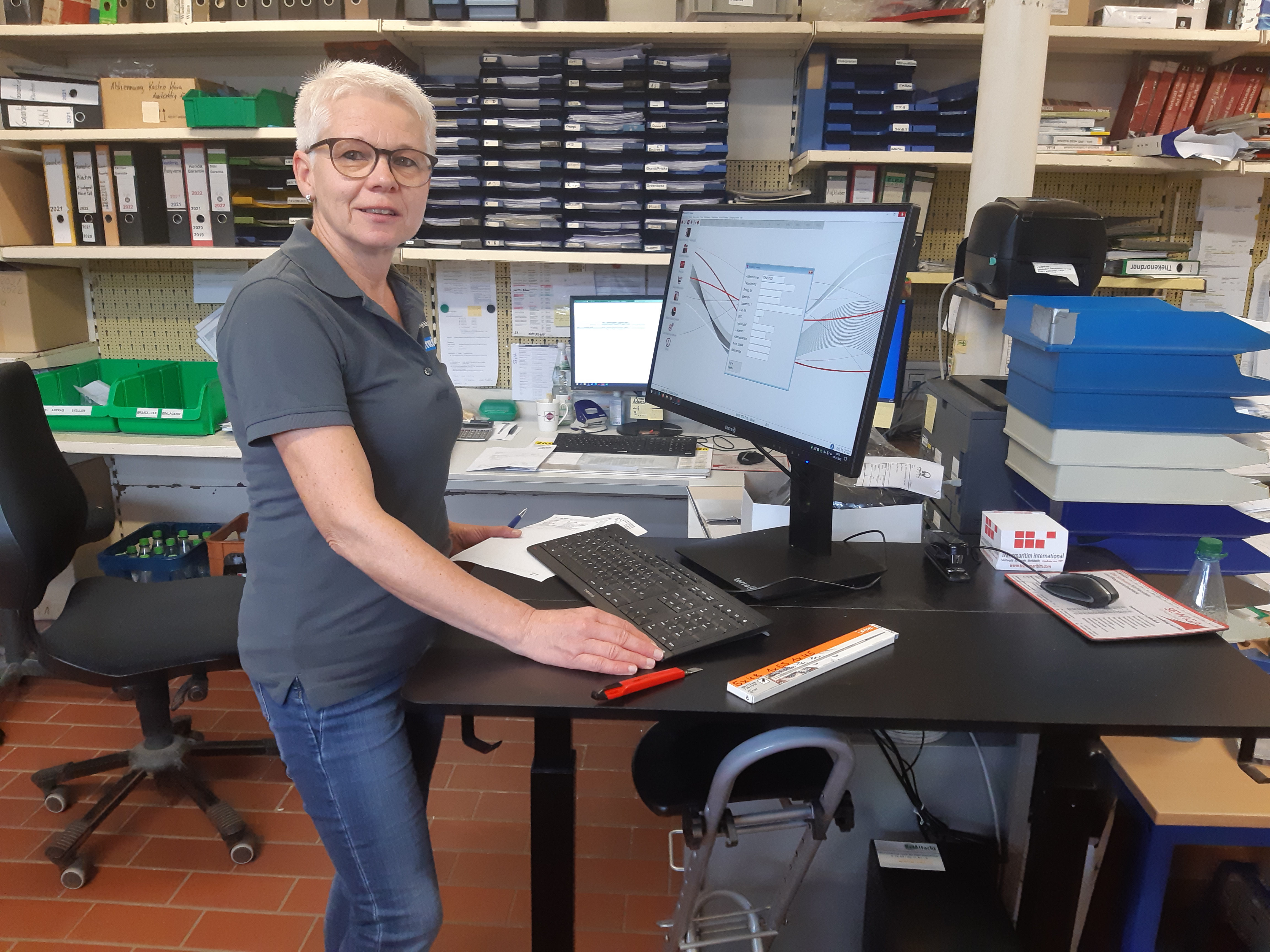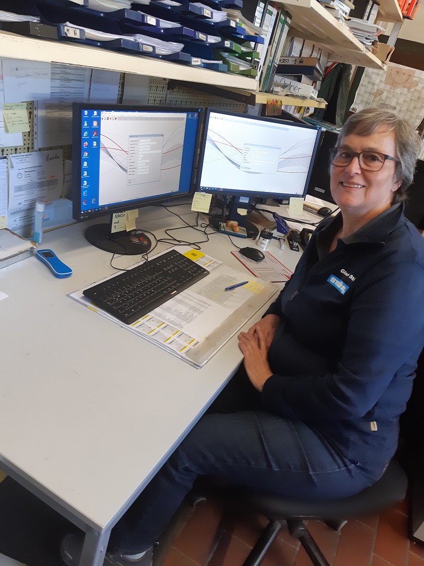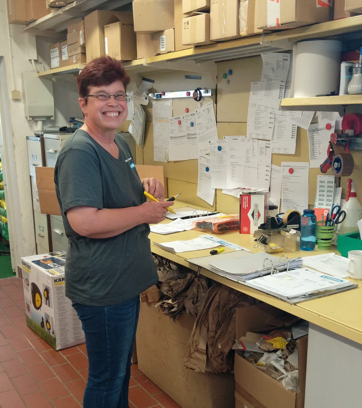 sorgt dafür, dass im Lager alles am richtigen Platz ist. Sie ist seit 1989 im Betrieb. Zusätzlich ist sie vor allem für die reibungslose Garantieabwicklung zuständig.