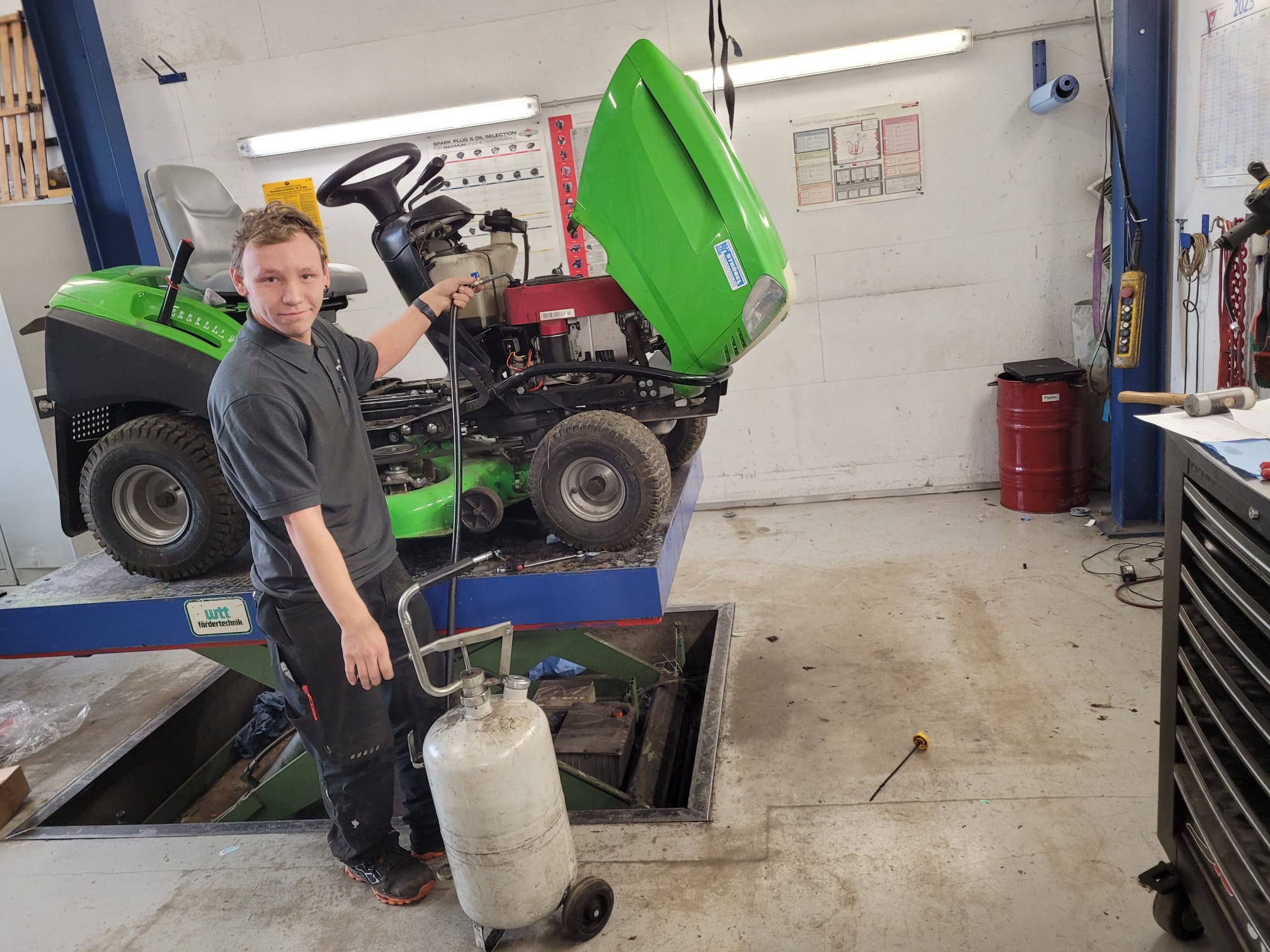 ist seit September 2025 bei uns Auszubildender in der Werkstatt. Er macht seine Ausbildung zum Land- und Baumaschinenmechatroniker in der Fachrichtung Motorgeräte.